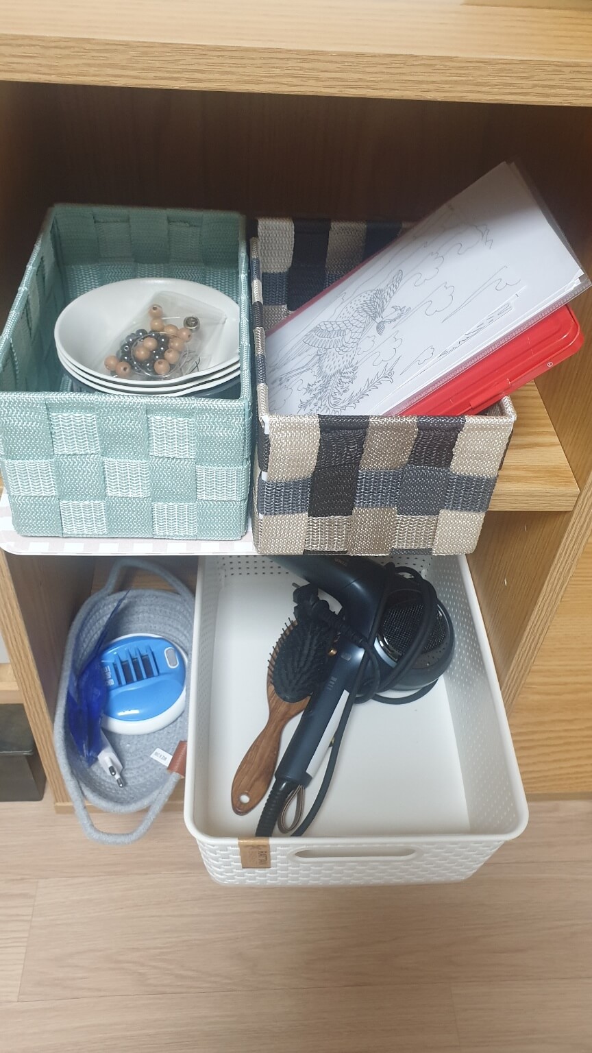 선풍기, 전기포트, 드라이기, 각종 책들,