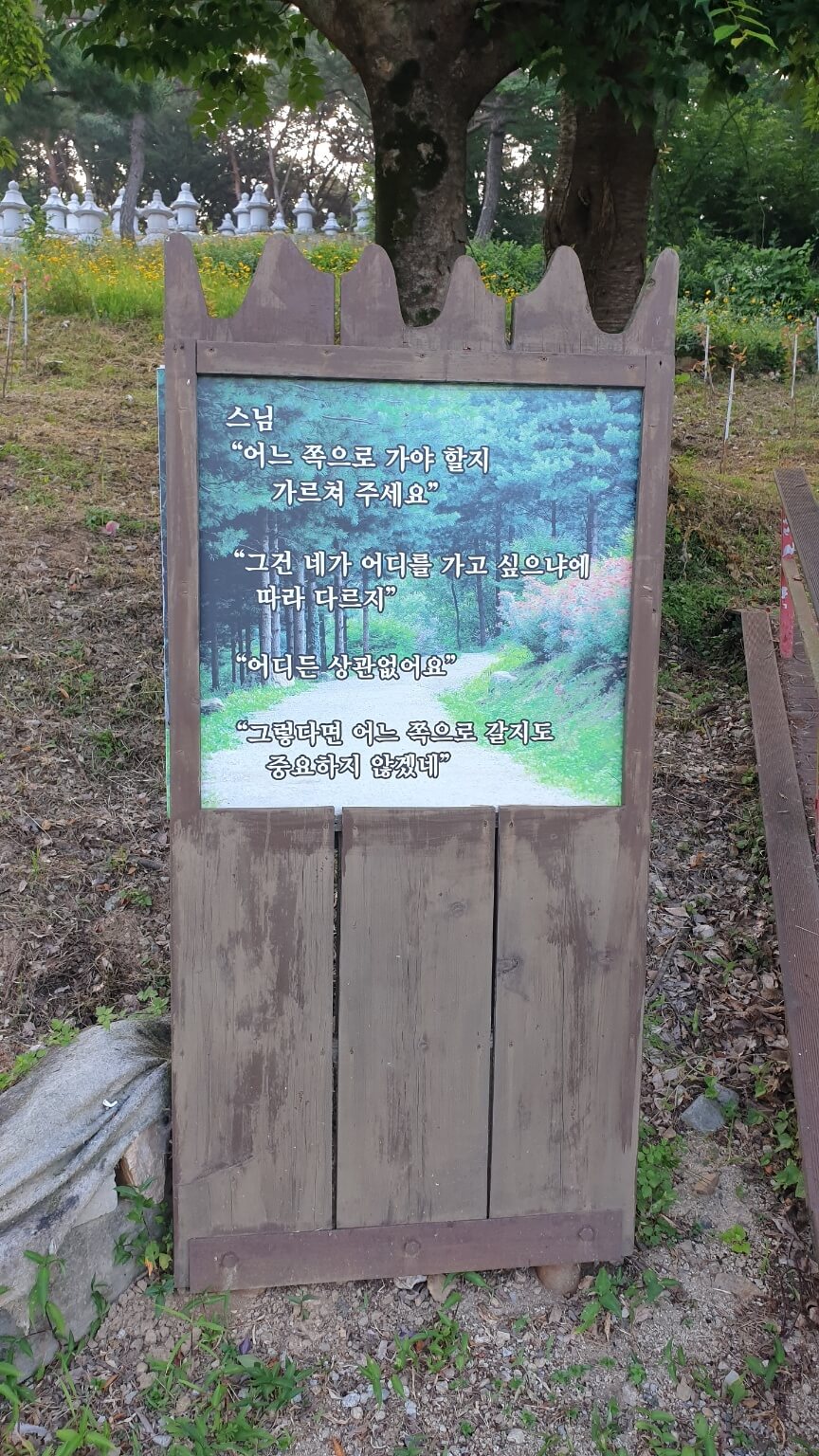 들꽃과 조형물들이 있어요.