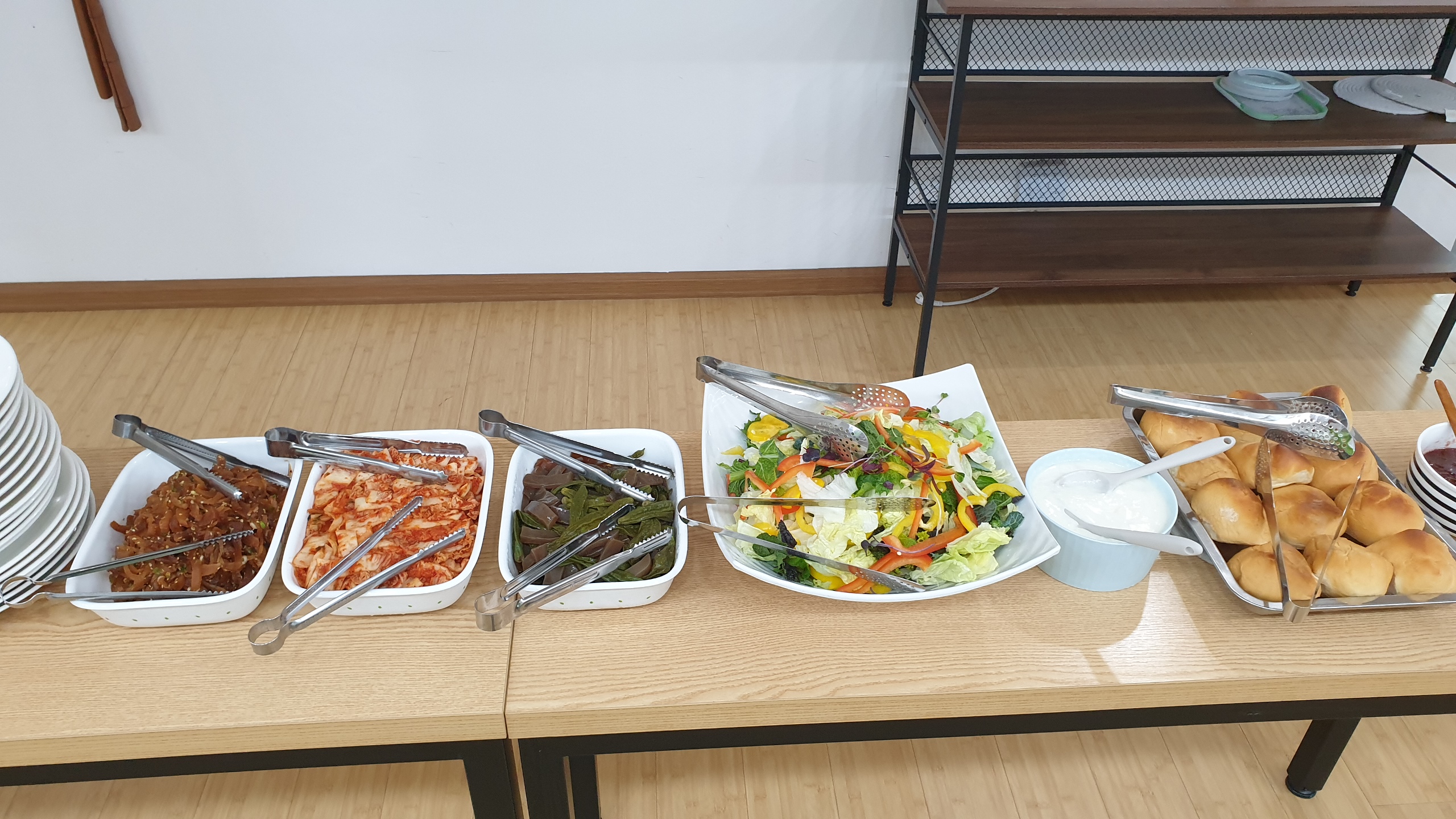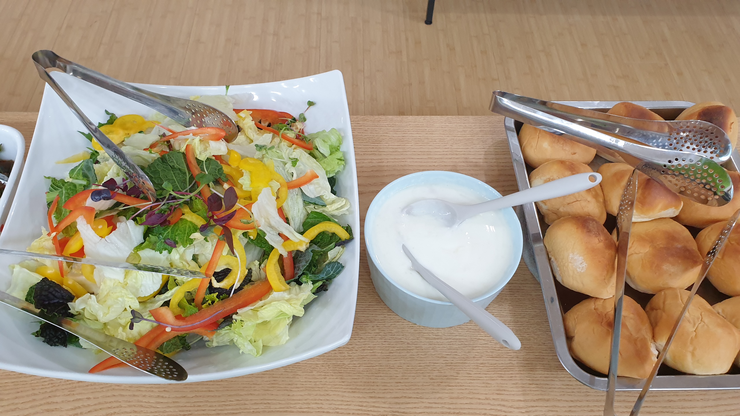 직접만드신 모닝빵과 샐러드, 떡국이 나와서
