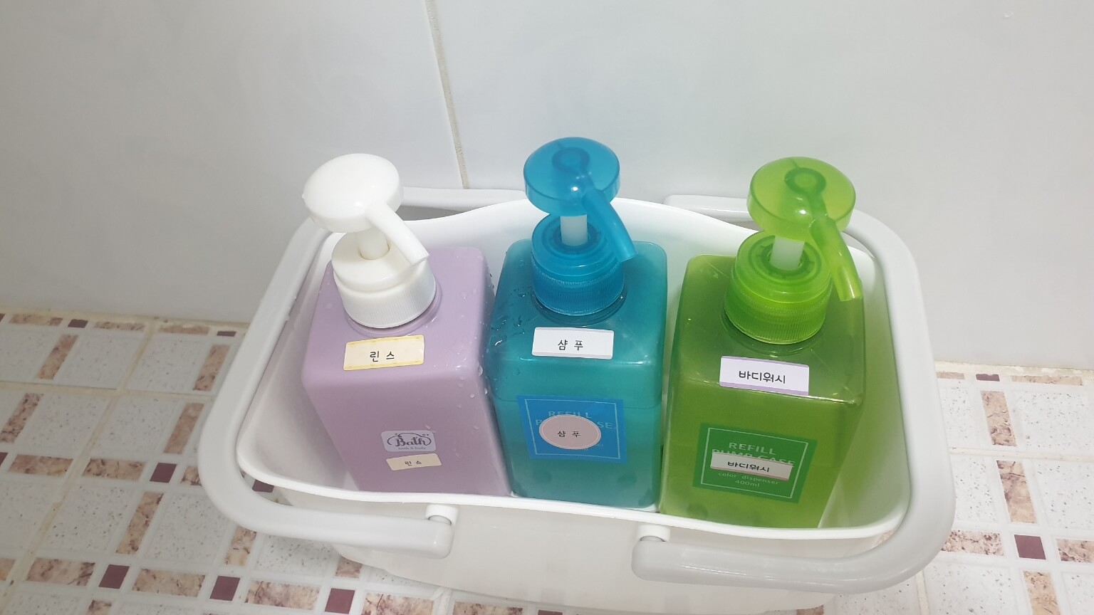 기본적인 샴푸, 린스, 바디워시가 비치되어 있어요.